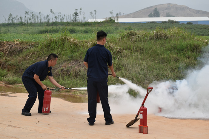 所有人員在禹州分公司民用爆炸物品倉庫區域外部指定區域,分七組進行滅火實操。通過實操演練,所有人員均能掌握滅火器“一提二拉三對準四壓”操作要領,從而達到熟練使用滅火器和掌握撲救初期火災的能力,實現理論與實踐的有效結合,達到了實操演練的目的。