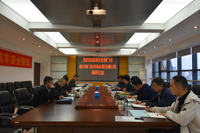 會上,劉嵩董事長對魯局長一行的到來表示真誠而熱烈的歡迎,并就公司基本情況、河南省民爆物品全年生產能力和需求能力等有關情況進行了詳細的介紹。靳義國副總經理介紹了公司民爆物品銷售模式及目前省內市場經營秩序等相關情況,張鐵飛副總經理介紹了河南省民爆行業管理辦法及相關政策。隨后,雙方圍繞安全發展、“河南模式”等展開了深入的交流討論。