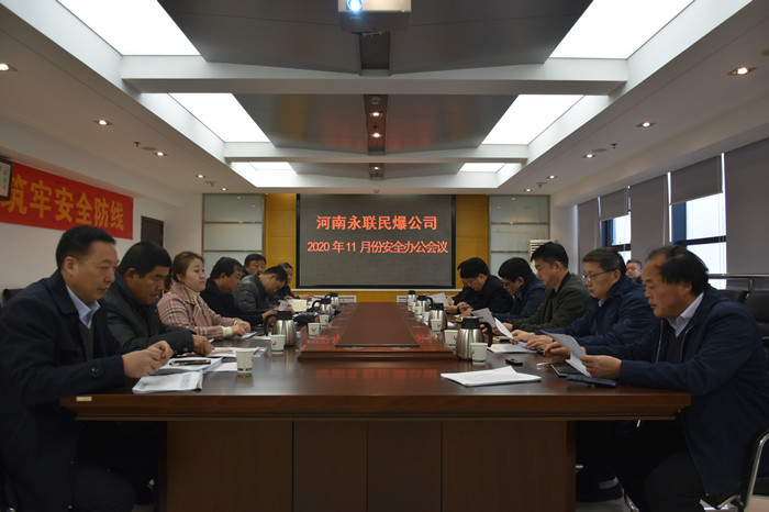 2020年11月30日,河南省永聯民爆器材股份有限公司召開了11月份安全辦公會議,公司領導班子、安委會成員、安委會辦公室成員以及宜陽縣、光山縣、寶豐縣、內鄉縣、鶴壁、固始縣等6家分公司負責人參加了會議。會議由公司副總經理靳義國主持,公司董事長、總經理劉嵩參加會議并講話。