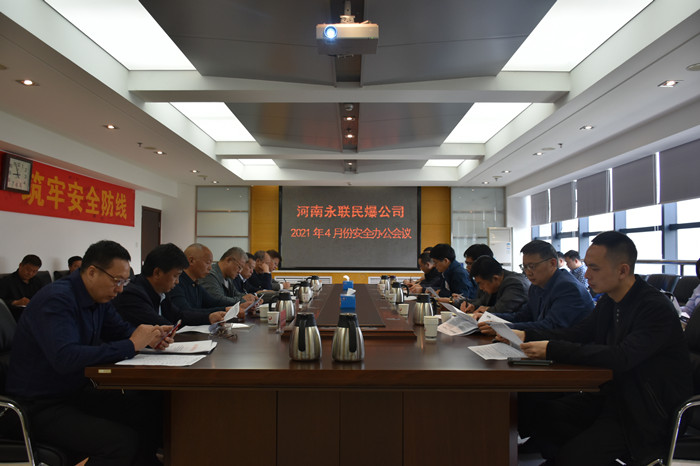 2021年4月29日,河南省永聯民爆器材股份有限公司召開了4月份安全辦公會議,公司領導班子、安委會成員、安委會辦公室成員以及靈寶市、嵩縣、魯山縣、淇縣、登封市、焦作市等6家分公司負責人參加了會議。會議由公司副總經理靳義國主持,公司董事長、總經理劉嵩參加會議并講話。