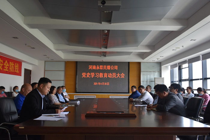 會上,公司黨總支副書記周文磊同志傳達了《中共河南省永聯民爆器材股份有限公司總支部委員會關于開展黨史學習教育的工作方案》,對黨史學習教育的學習內容、學習形式、進度安排、工作要求進行了具體部署。