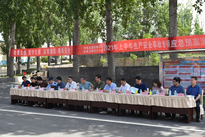 今年6月是全國第20個“安全生產(chǎn)月”,為進(jìn)一步牢固樹立以人為本、安全發(fā)展的理念,防范化解重大風(fēng)險(xiǎn)、及時(shí)消除安全隱患、有效遏制生產(chǎn)安全事故,2021年6月18日,河南省永聯(lián)民爆器材股份有限公司與永聯(lián)衛(wèi)輝市分公司聯(lián)合開展以“落實(shí)安全責(zé)任,推動安全發(fā)展”為主題的專項(xiàng)應(yīng)急演練。公司特邀省委軍民融合辦二級巡視員張衛(wèi)東,民爆局局長王玉生以及新鄉(xiāng)市工信局、衛(wèi)輝市工信局等單位領(lǐng)導(dǎo)蒞臨現(xiàn)場觀摩指導(dǎo)。