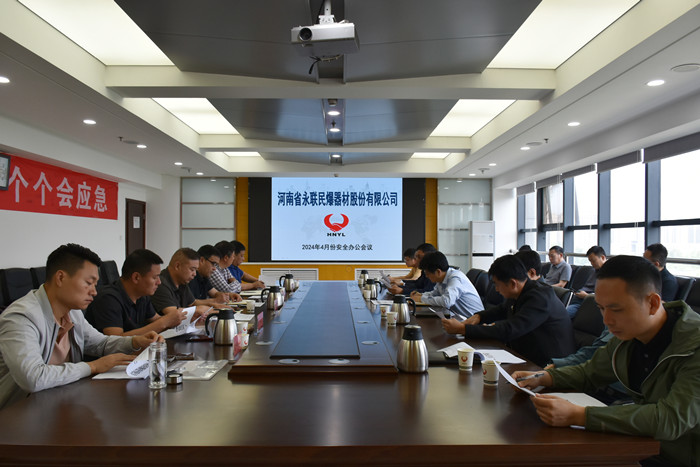2024年4月29日,河南省永聯民爆器材股份有限公司召開了4月份安全辦公會議,公司領導班子、安委會成員、安委會辦公室成員以及南召縣、光山縣、汝州、欒川縣、偃師市、鎮平等6家分公司負責人參加了會議。會議由公司副總經理靳義國主持,公司董事長、總經理劉嵩參加會議并講話。