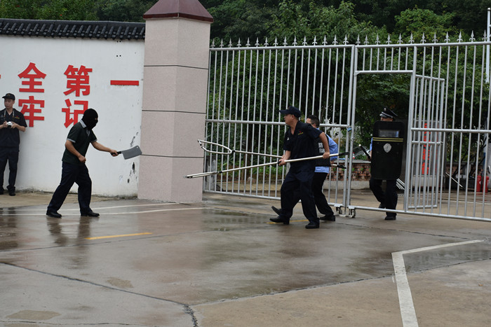 在預(yù)設(shè)情境下,庫區(qū)崗哨發(fā)現(xiàn)可疑人員試圖闖入,值守人員勸阻無效后,恐怖分子持兇器砸門。值守人員迅速穿戴防護(hù)裝備,與恐怖分子對峙并上報(bào)情況。演練副總指揮迅速啟動反恐專項(xiàng)應(yīng)急預(yù)案并報(bào)警,各小組支援,對恐怖分子形成夾擊之勢,規(guī)勸無果后展開搏斗。最終,恐怖分子被制服,醫(yī)療組到場救治傷者。整個(gè)演練過程中,所有參演人員能夠按照真實(shí)場景進(jìn)行處置,事件發(fā)生、報(bào)警、響應(yīng)、支援、警戒、圍捕,過程連貫有序,人員嚴(yán)肅認(rèn)真,程序銜接到位,達(dá)到預(yù)期效果。