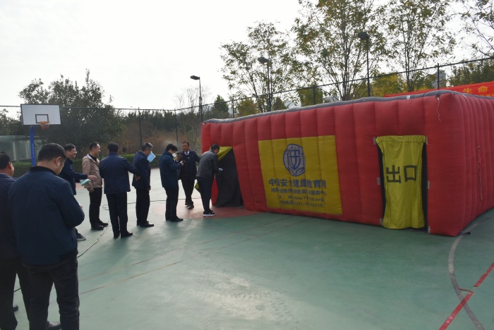 最后,為提高公司員工在真實火災環境中應急反應和逃生自救能力,在李教官的專業指導下,由公司領導班子帶頭,全體員工分組、有序進入煙霧彌漫的消防逃生體驗屋,在近乎“零視覺”的環境中尋找安全疏散通道出口,身臨其境地體驗火災逃生現場。在疏散演練活動中,全體員工以嚴肅認真的態度,全力以赴地完成了演練。