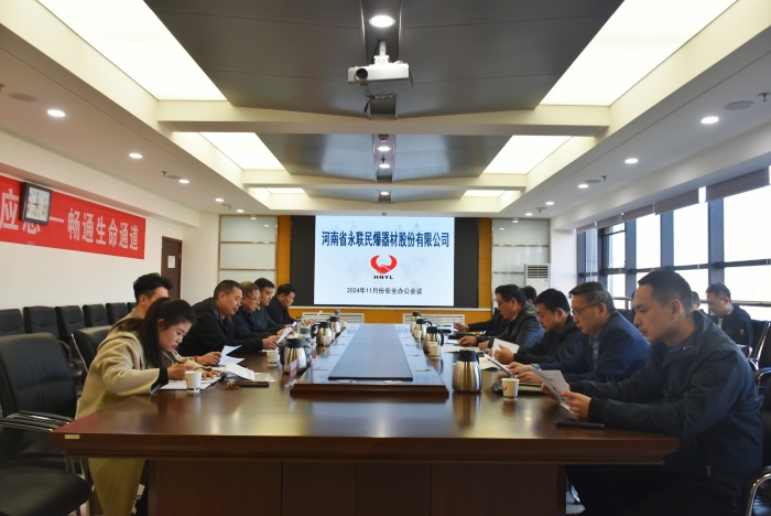 2024年11月29日,河南省永聯民爆器材股份有限公司召開了11月份安全辦公會議。會議由公司總經理靳義國主持,公司領導班子、安委會成員、安委會辦公室成員以及平頂山力源、汝州、宜陽縣、信陽市平橋、焦作市、商城縣等6家分公司負責人參加了會議。