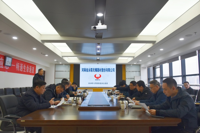 2024年12月30日,河南省永聯民爆器材股份有限公司召開了12月份安全辦公會議,公司領導班子、安委會成員、安委會辦公室成員以及衛輝市、嵩縣、鎮平、光山縣、淇縣、淅川等6家分公司負責人參加了會議。會議由公司總經理靳義國主持,公司董事長劉嵩參加會議并講話。
