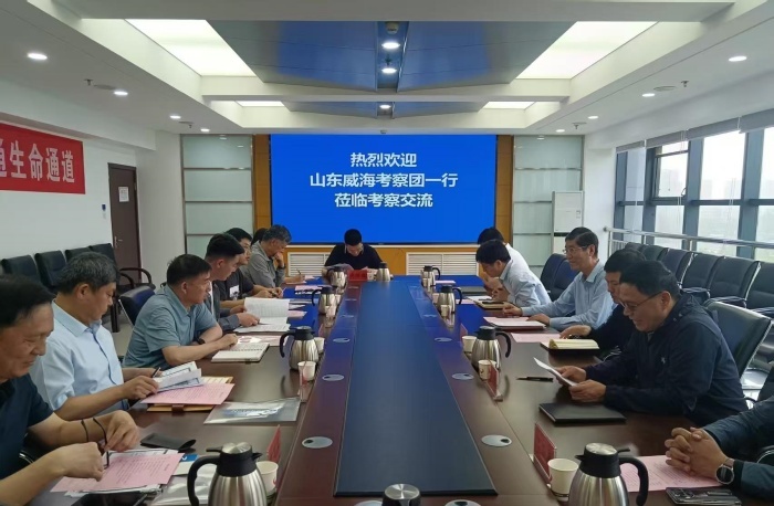 2025年4月16日,由山東省威海市交通運輸局黨委委員、副局長郭忠啟帶隊,會同威海市交通運輸局、威海海關、威海海事局、威海市經濟技術開發區商務局、山東港口威海港等相關部門領導組成考察團蒞臨公司考察交流。河南省委軍民融合辦民爆器材管理局局長王玉生、三級調研員張智超、公司董事長劉嵩、總經理靳義國、副總經理秦紅、捷航控股集團有限公司相關領導及有關人員參加座談。